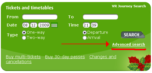 Слева в поле с надписью VR Journey Search в верхнее поле пишешь Helsinki , в нижнее Rovaniemi , затем выбираешь дату отправления и маршрут в одну сторону (One-way) или туда-обратно (Two-way).