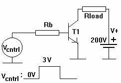 1.a) Find the value for Rb so, that the control signal will drive transistor T1 into saturation (=totally ON) although may have any value between 100...250. Rload is 200 ohms. (2 points)