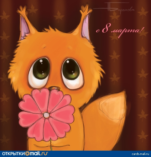 Поздравляю с 8-м Марта, с женским праздником весны! Поздравляю с тем, что солнышко с каждым днем все дольше озаряет ваши черты, что новизна природы приображает и вас, и что настает время тепла, света и любви. Еще раз с праздником, дорогие женщины!