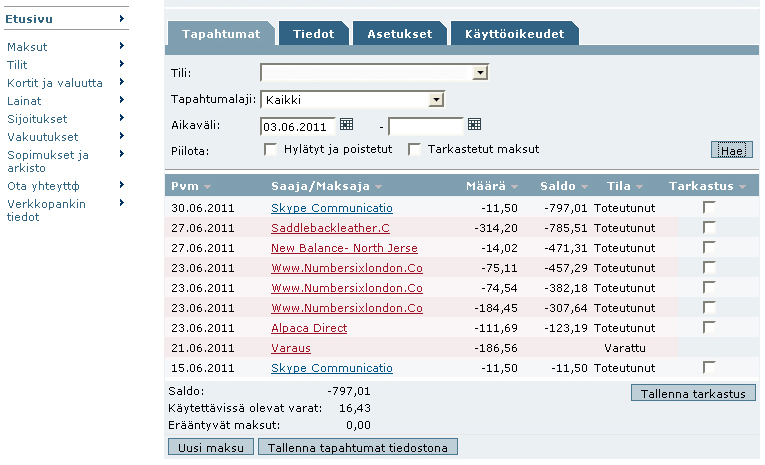 На Хаканиеми отдела полиции нет, ближайший- Пасила - заяву в полицию можно написать, примут- но если сочтут что факта преступления нет- то и дело не заведут - если вы по своей растерянности или по какой другой причине дали данные карты на непроверенных сайтах - то вина будет полностью ваша, чтобы доказать что у вас сперли данные- потребуется много сил. В банке можете потребовать распечатку кто снимал деньги, когда, названия фирм и viite после этого звонмите в те фирмы и выясняйте- если афеора- тогда полиция. Надеюсь что неправильно снятые деньги вам вернут