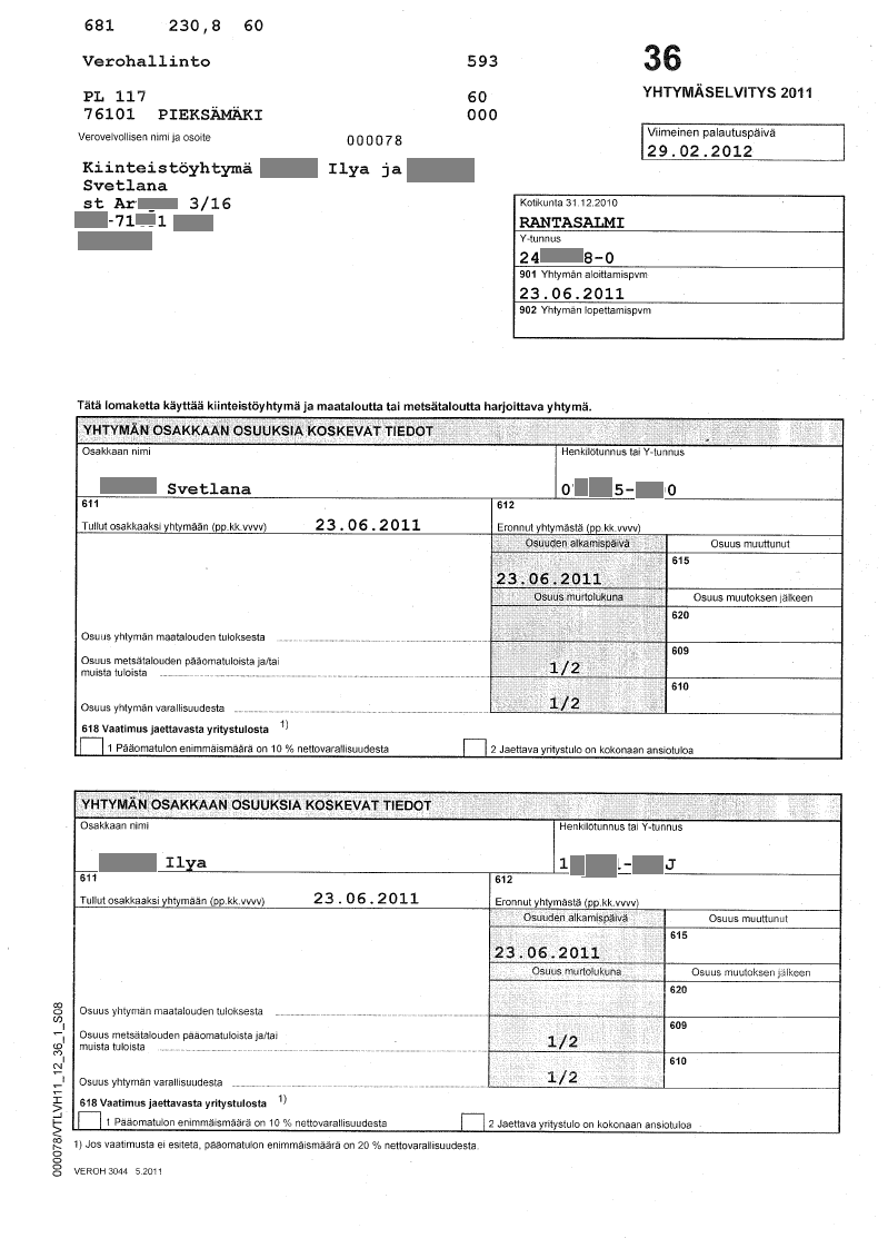 1) Правильно ли понято, что это бланки декларации о недвижимости (№36) и о доходах от недвижимости (№7)?