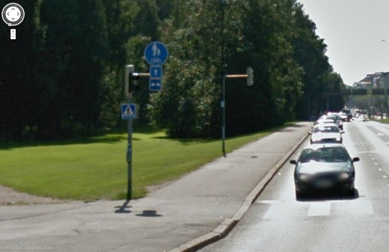 Интересно финские ПДД отличаются от российских в этом вопросе??? По РФ ПДД велосипедист обязан подъехать к пешеходному переходу, слесть с велосипеда, взять его "за рога" и перейти пешеходник ногами и только после перехода дороги по пешеходнику вновь сесть на велосипед и ехать дальше.