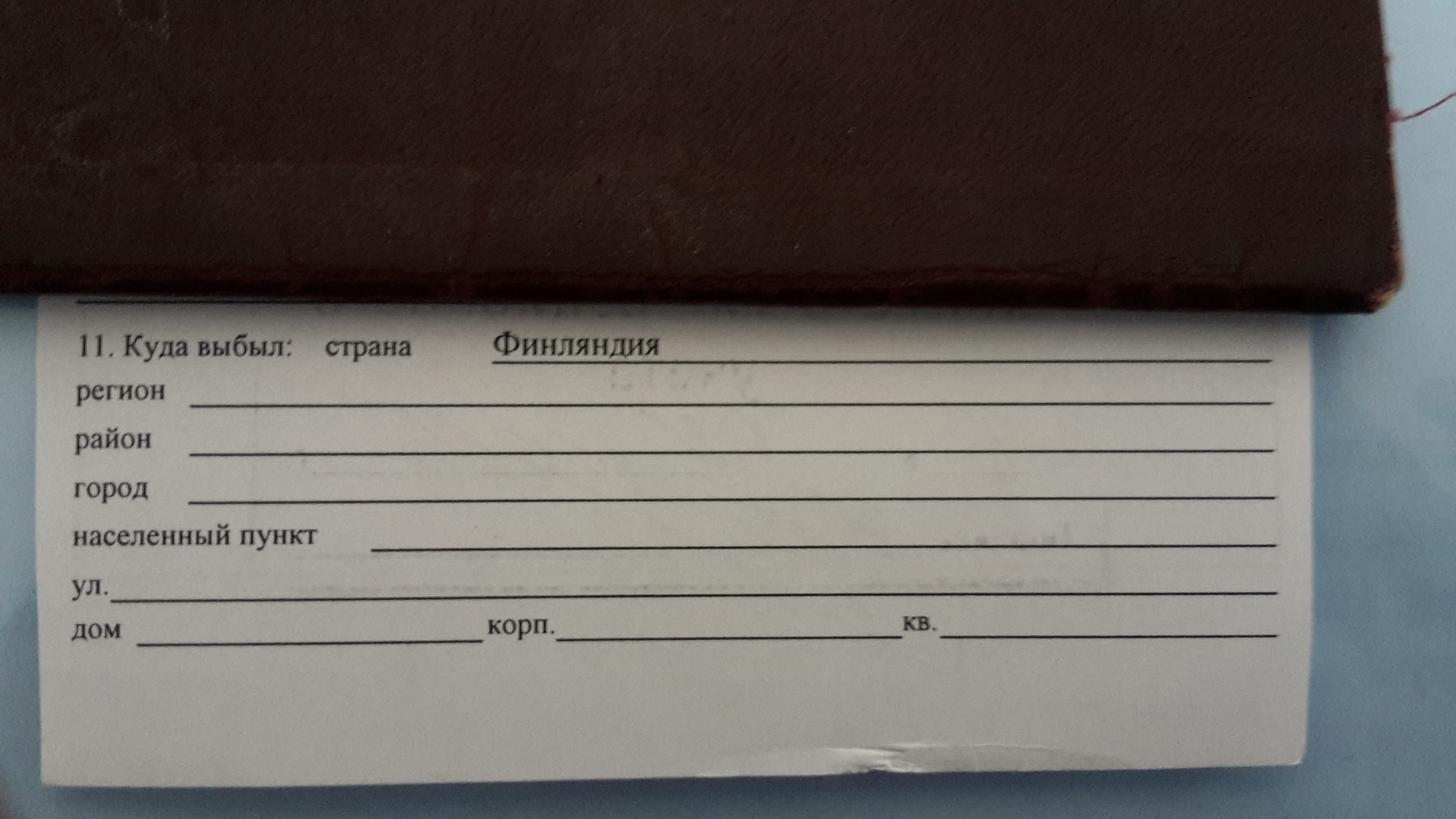 в ЖЭКе когда выписывают адрес в финке и не спрашивают, пишут просто выбыл в Финляндию на ПМЖ.