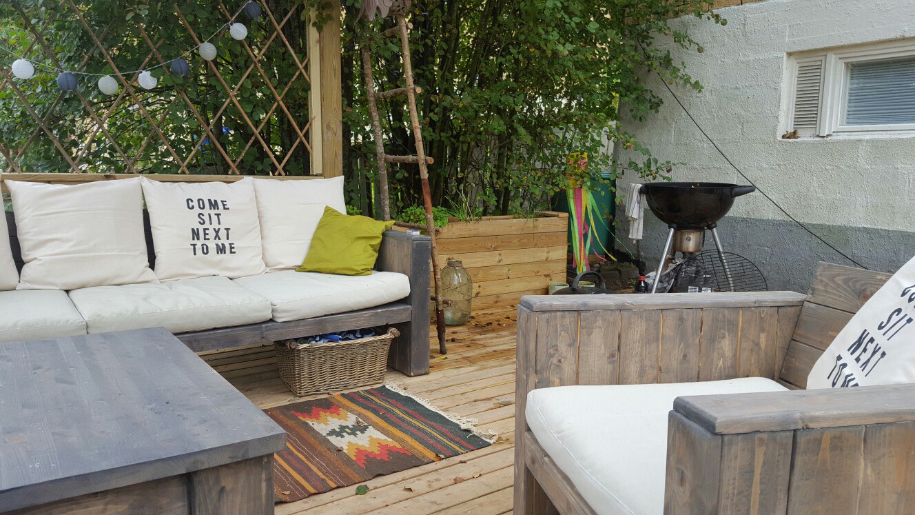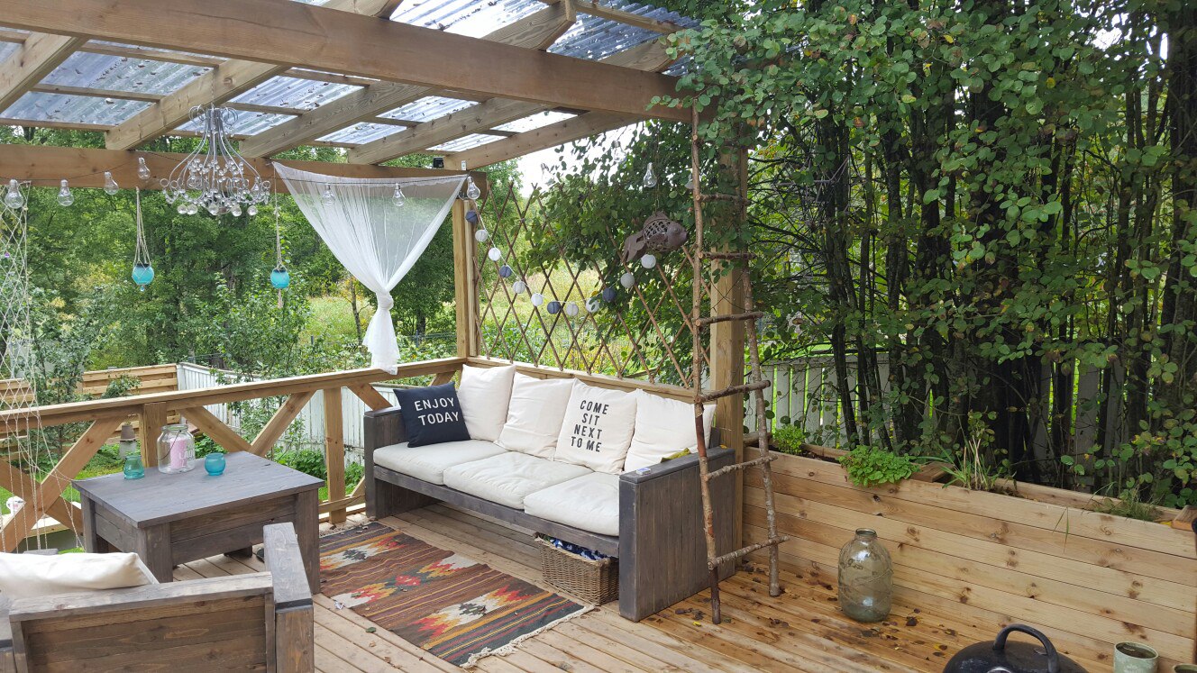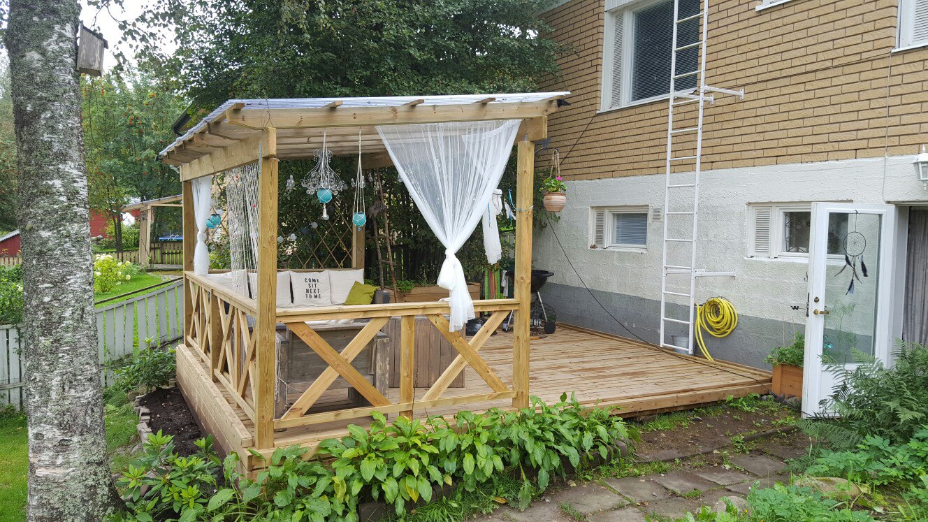 Вот моя, летом построил. Материалы на террассу и мебель примерно 1500 евро