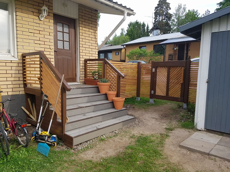 Строила финская фирма "Хельсингин пуупалвелу", за всё взяли 3 тонны, соорудили за полтора дня. Так как я просила, без лишних слов и умничаний. С полуслова поняли, что мне надо, видимо, есть опыт.