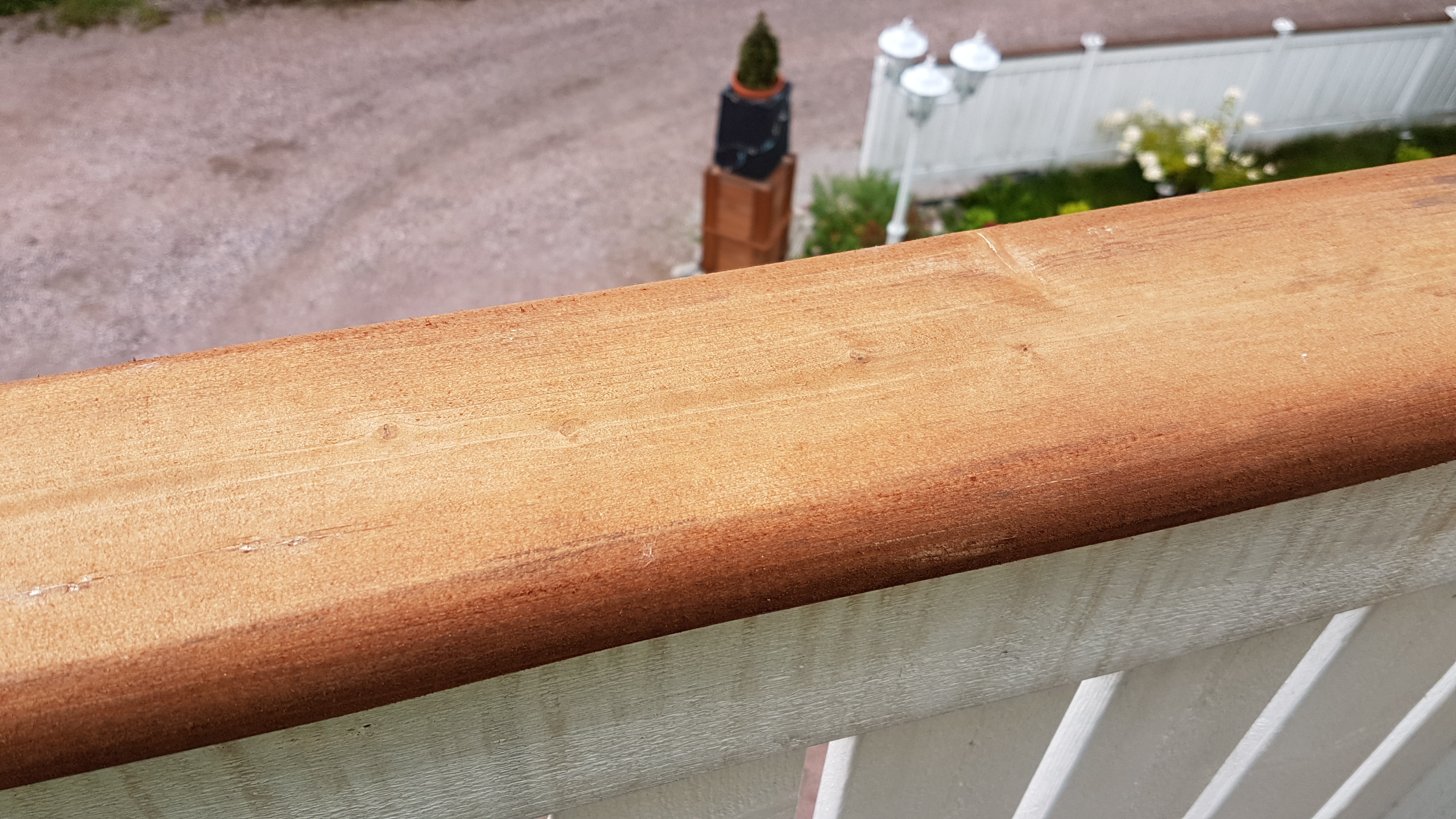 С другой стороны отшкурил и покрыл пенатексом, вообще супер. Вот думаю ну нафиг краску, все перила запинатекщю или всё таки покрасить?