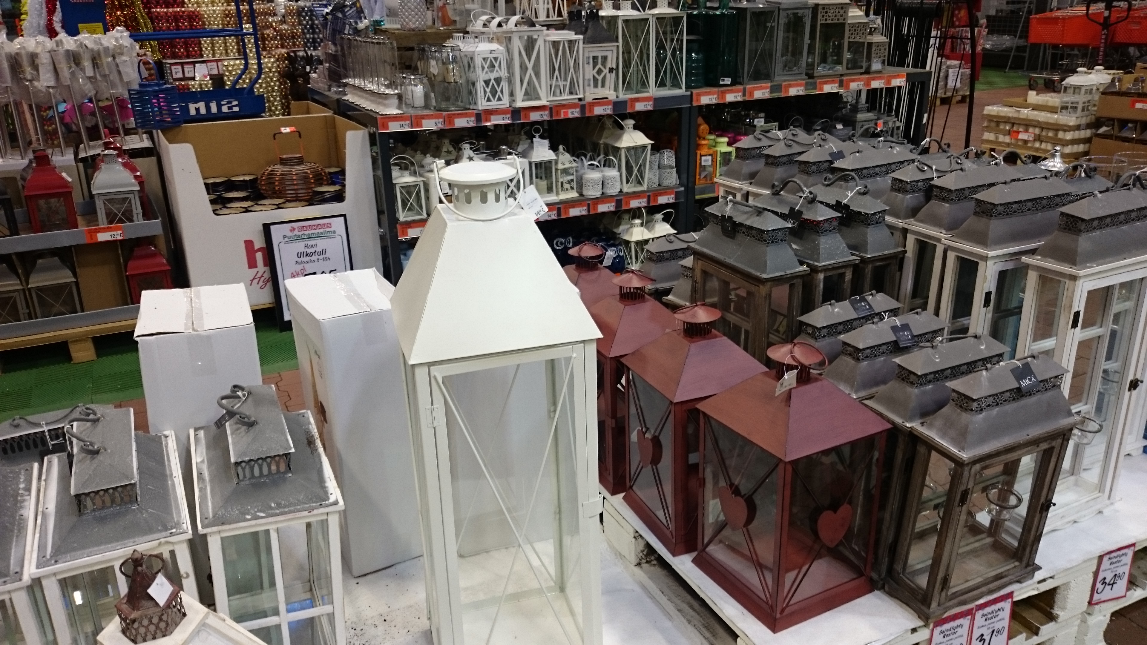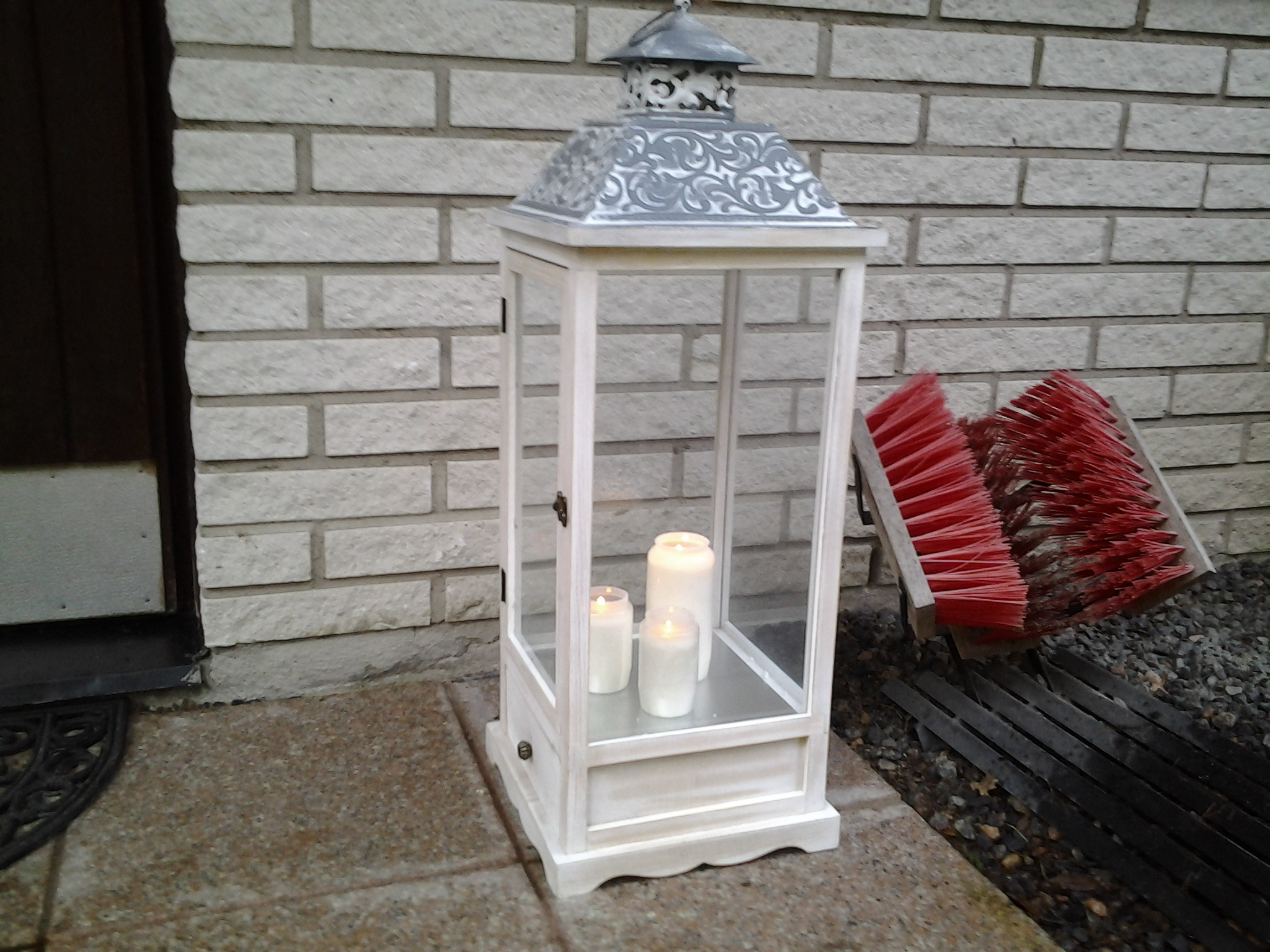 Видел ли кто-нибудь в продаже большой фонарь для свечей (lyhty), примерно полтора метра высотой? Белого цвета, метал с деревом, внизу выдвижной ящик.