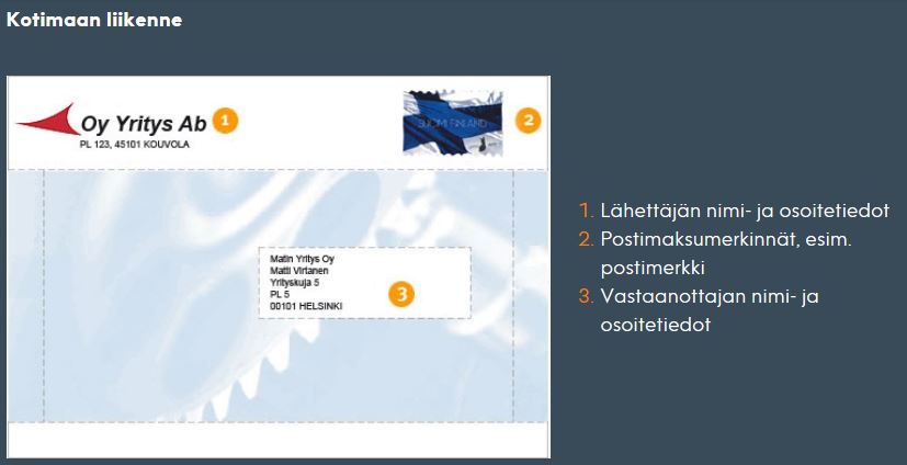 Заполняете конверт от руки согласно инструкции на картинке (1-отправитель, 2-марка, 3-адрес келы с сайта келы), марки можно купить на почте, в s- и k-маркетах за пару евро
