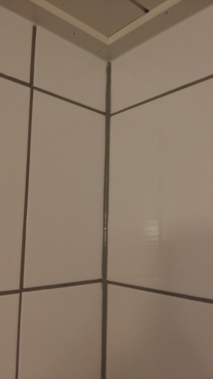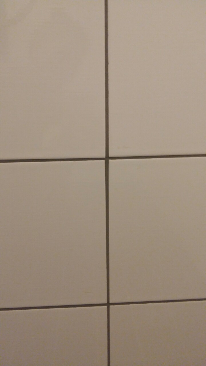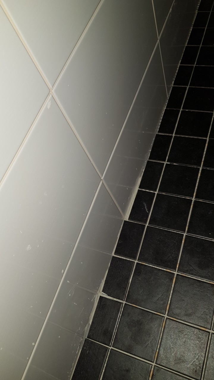 Работа выполнена некачественно, плитка наклеена криво, большие слои силикона, неподходящий цвет затирки.
