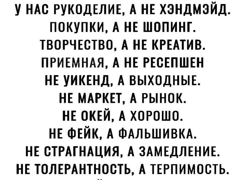 И это, на мой взгляд, очень плохо. Сопротивляюсь этому в меру своих сил. Хотя бы тем, что стараюсь не употреблять англицизмы в своей речи. К чему и других призываю.