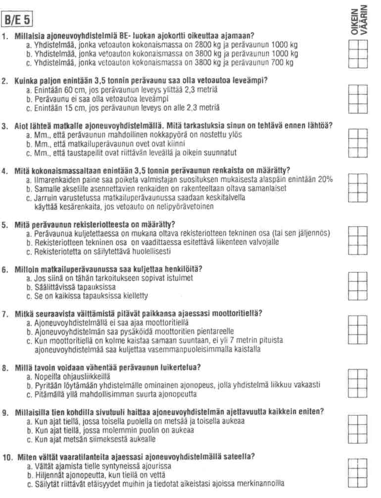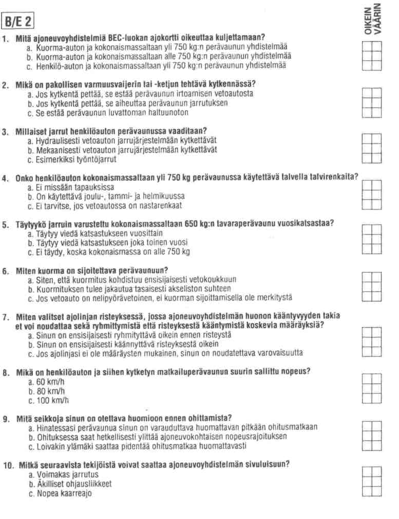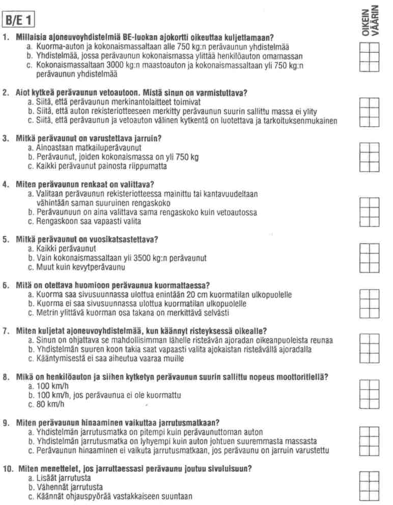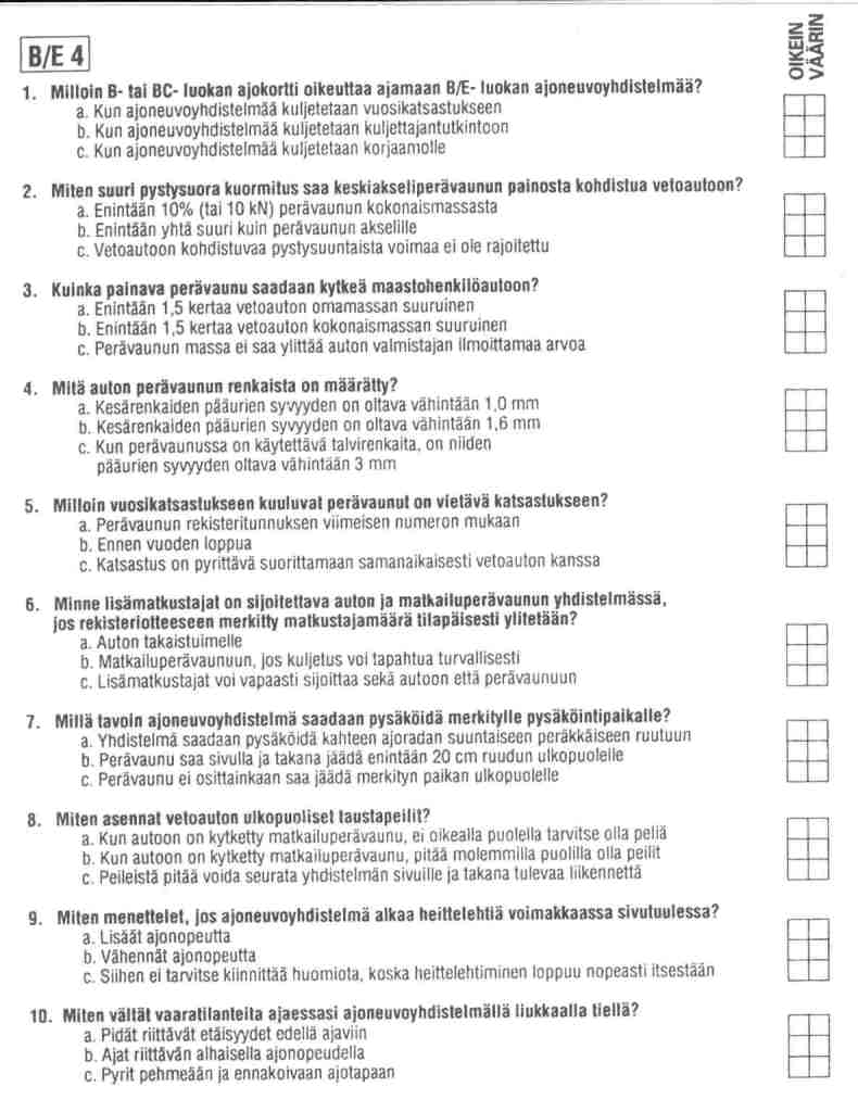 1. Сколько мин/мах должны быть машина, прицеп и как это отношение регулируется относительно omamassa и kokonaismassa,как понимать Ве1.2.b и Ве4.3.b,с и Ве5.1.а?