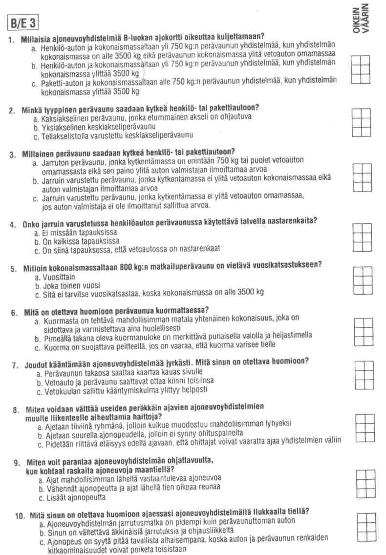 B-LUOKAN AJOKORTTI: