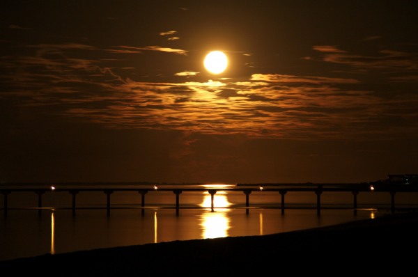 Эта луна была ещё красивее и больше, когда она была на горизонте. Но, пока мы бежали по длинному пирсу за фотиком, приехав с рыбалки - она взошла, очень быстро.....