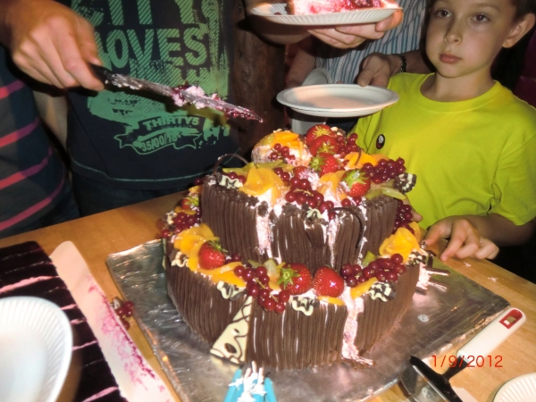Ребёнок прямо смотрит на кусок торта на верхней тарелке и прям жаждет его.. Но знает что не получит..