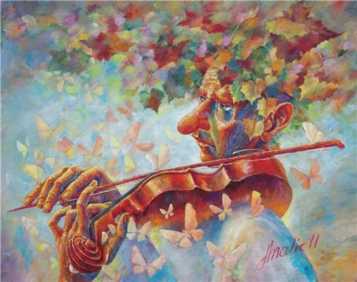 Эх... хорош! И нос такой убедительный... А скрипка - так это просто моё второе сердце. Вот только играть на ней не умею... Разве что на обратной стороне...