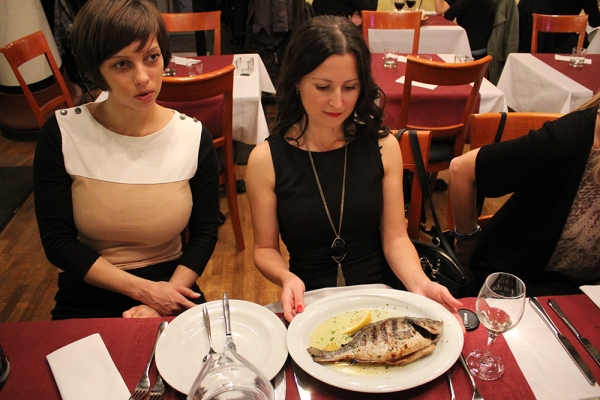 В общем, нас познакомили так: "Юлия, это дорада. Дорада, это Юлия. Приятного вечера." Не знаю, о чём думала рыба, а я подумала: "Йааазь". Зелёное вообще не думало, оно оказалось овощем. За что было не только заслонено, но и съедено Мастером же.