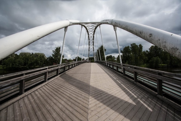 Мне нравится то, что укладка досок на мосту "приближает" изображение, тогда как балки вверху - уходят вдаль. Мост от этого какой-то бесконечный получился. :)