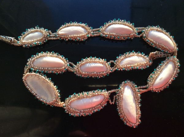 Ожерелье "Стопы Венеры" (перламутр) nПосле морской бури я нашла на берегу перламутровые раковины, которых нет в основных морских каталогах. Один ихтиолог рассказал мне преинтересную притчу о том, что это стопы Богини Венеры. На самом деле этот перламутр грубый жемчуг устрицы. Но сам факт того, что эти жечужины при оплетении действительно похожи на маленькие изящные ступни из чистейшего перламутра, меня очень заинтересовал.nИ колье мне захотелось сделать совершенно спонтанно. Ни в коем случае не хотелось сверлить ни одной дырки.nЭто мое первое колье, которым я очень горжусь, ведь оно полностью состоит из тех следов, которые оставила на Земле Богиня Любви - Венера. А подарило мне эти перламутровые раковины - само Море!