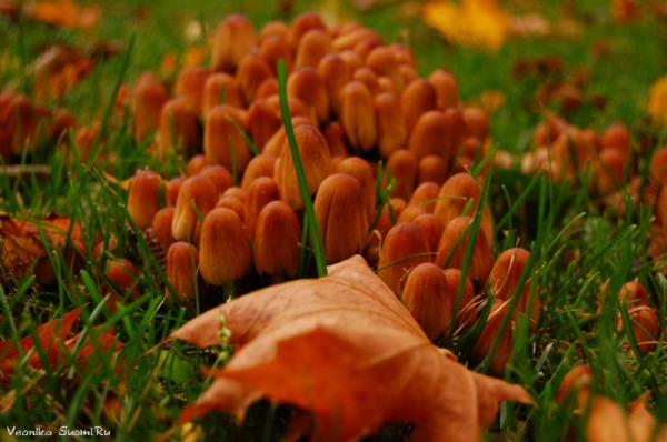 много грибов. В центре города, парк