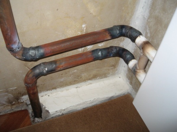 Монтаж отопительных труб в стиле "лоскутная техника". Сделано гастарбайтерами.