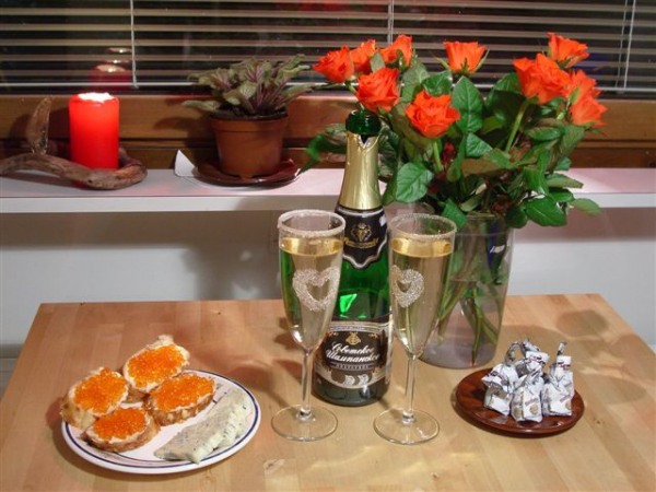 Лимон на икре? Что-то новенькое:) Изображен чисто женский взгляд на любовь. Моё солнце тоже мне советовала подобное сфоткать, тока вино вместо шампанского, и 2 свечки :)
