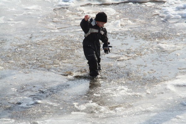 пацан просто камикадзе... это лед на речке что ли?