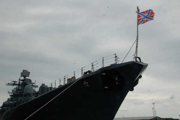C чего ты взял? Он вообще не плывет :) А флаг на ветру развивается ;)