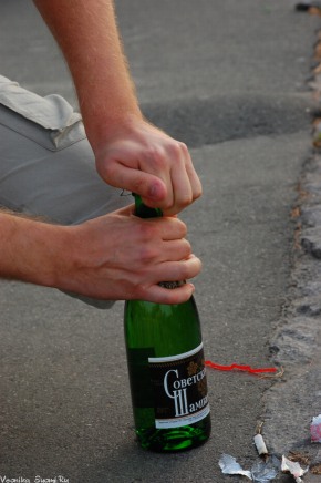 чинарик, мусор и кривой асфальт в кадре как то слабо гармонируют с торжеством момента. неэстетично, мне кажется.