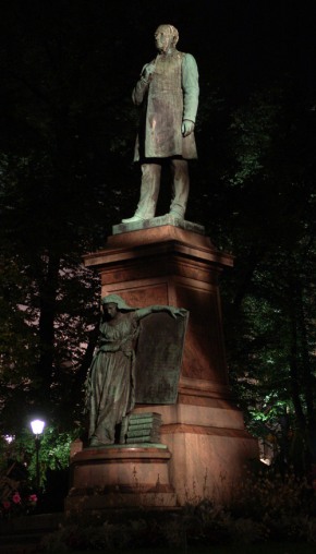 А где вечная жирная чайка на его бронзовой макушке? Спугнул или они ночью не летают?