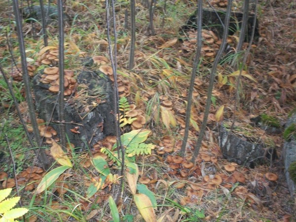 Если пни берёзовые,то опята.Но нужно нюхать/пробовать на язык,т.к. могут быть и ложные ...