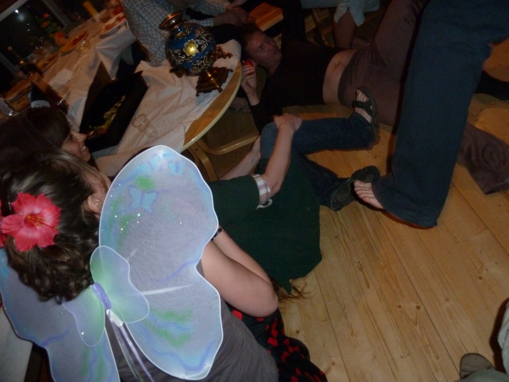 Изображает таракана. Слишком вжился в роль ;)